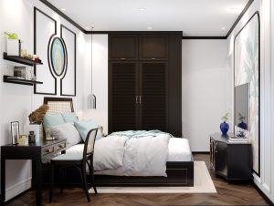 Không gian phòng ngủ là nơi nghỉ ngơi của các thành viên trong gia đình, do đó cần đảm bảo sự yên tĩnh, thoải mái. Giường ngủ có kích thước phù hợp với diện tích phòng, ngoài ra, có thể bố trí thêm các đồ nội thất khác như: bàn trang điểm, tủ quần áo, kệ quần áo,…..tránh trang trí quá rườm rà, chật chội.